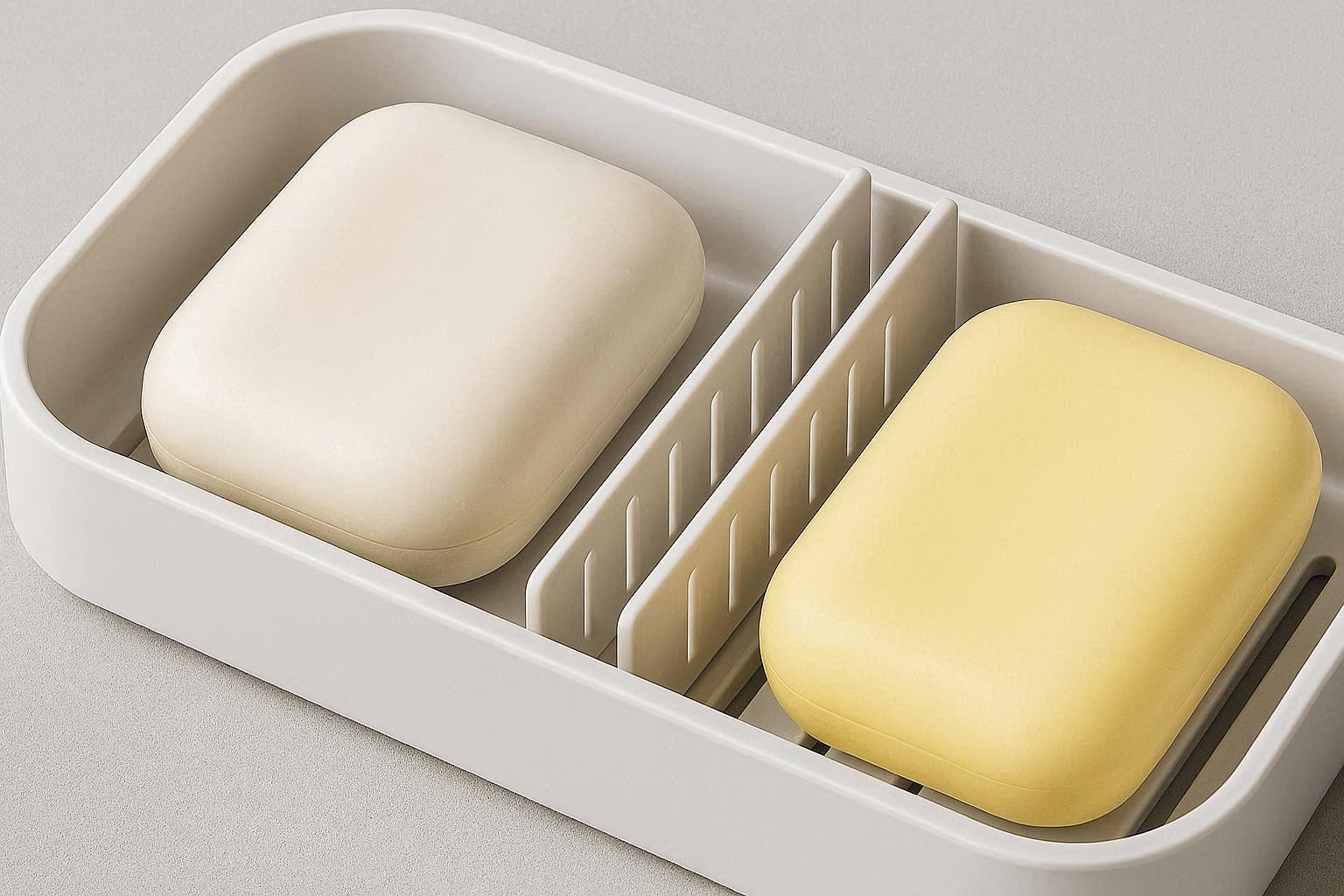 This practical double soap dish is perfect for households that use multiple bar soaps, such as hand soap and body soap. It features a removable divider that allows you to use it as two separate compartments or combine them into one larger space for oversized soaps.