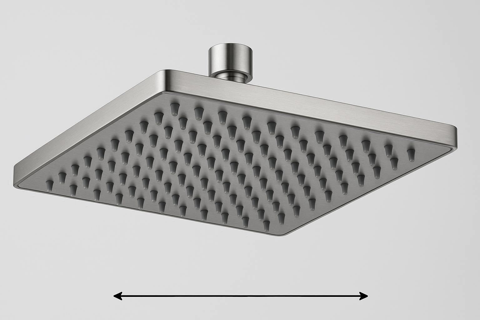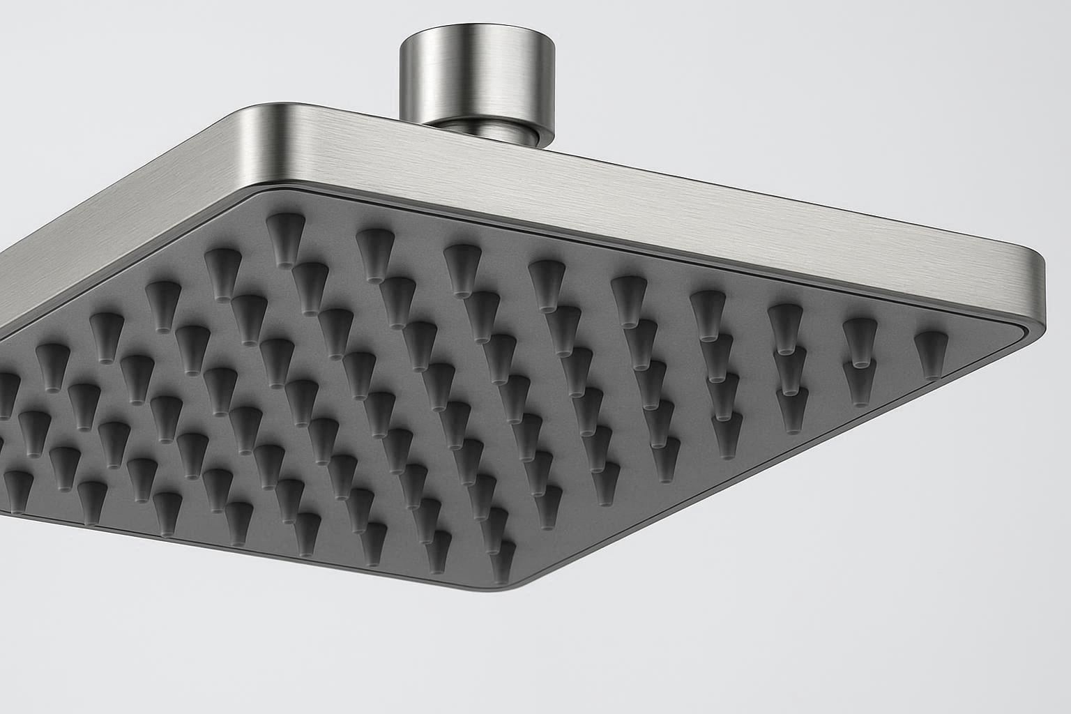 Make a bold design statement with this oversized 10 inch square rainfall shower head. Its minimalist, flat panel design provides a wide and luxurious drenching rainfall experience. The panel is constructed from high quality stainless steel with a matte black finish that resists fingerprints and water spots. It houses 160 individual self cleaning silicone nozzles that expel mineral deposits to prevent clogging.